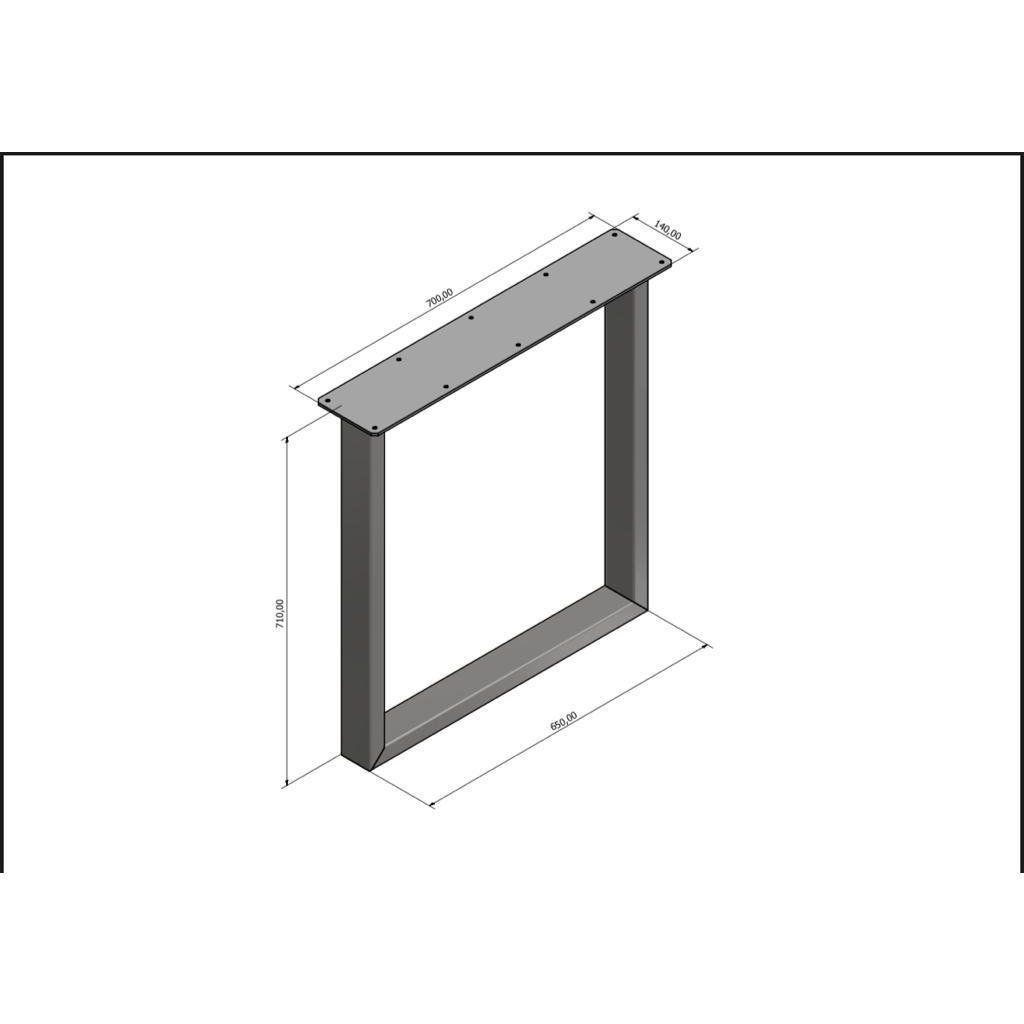 - Horní díl podnoží o rozměrech 700/140/5 mm je vyrobený v naší dílně na CNC plazmě, díky čemuž je zajištěna maximální stabilita a pevnost stolu