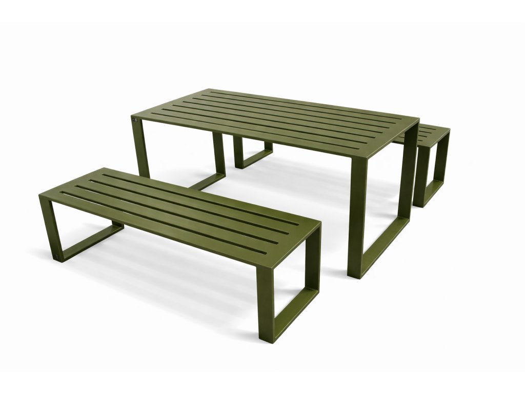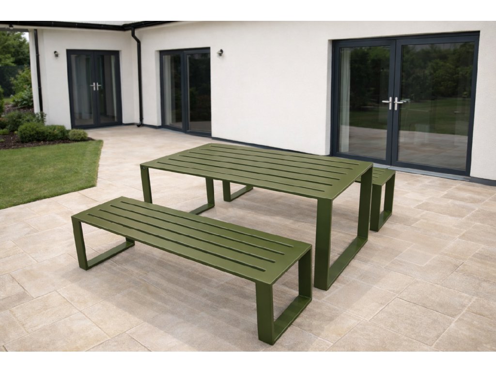 Hledáte elegantní a zároveň odolný zahraní nábytek? Náš celokovový set stolu a lavic spojuje minimalistický design s maximální pevností.